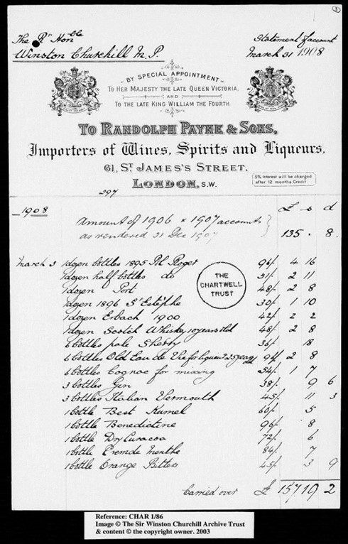 In 1908 alone, Churchill purchased over 100 bottles and over 80 half-bottles of Pol Roger 1895 vintage champagne, plus around 50 half-bottles of the 1900 Pol Roger vintage.